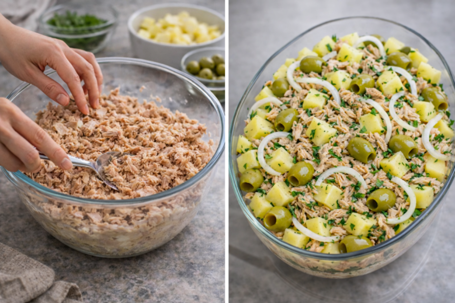 fiz achando que era “só acompanhamento” e virou o prato principal 😌✨ Essa aqui é daquelas saladas completas, bem temperadas e cheias de textura. A… Continue a ler »Salada de atum com batata e azeitona: fiz achando que era “só acompanhamento” e virou o prato principal