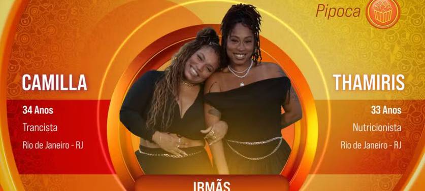 A terceira dupla confirmada é formada pelas irmãs Camilla e Thamiris, que moram no Rio de Janeiro. Camilla, de 34 anos, é trancista, enquanto Thamiris, de 33, é nutricionista.