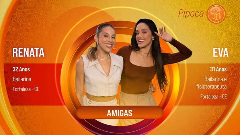A sétima dupla anunciada é formada por Eva e Renata. Naturais de Fortaleza, as duas são bailarinas e amigas de longa data.
